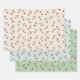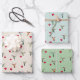 Valentine's Day wrapping paper for hummingbird lovers featuring hand-painted male and female Rufous hummingbirds, Anna's, Allen's, and Ruby-throated hummingbirds carrying hearts on a cream, green, and light blue background.