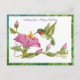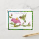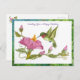 A postcard greeting of a Hummingbird and flower design by Ohio artist, Lois Mountz. This card says 'Happy Birthday' but can easily be edited by the buyer to be given for any occasion. Original of this card was sent to a friend during Covid 19 as were 59 other postcard original greetings to folks in nursing homes or ill.