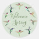 Cute "Welcome Spring" sticker for hummingbird lovers featuring several hummingbird species native to North America, such as Anna's, Costa's and Calliope Hummingbirds.