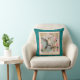 Hummingbird with Flowers on Teal Damask Monogram Cushion