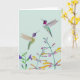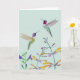 Card for all occasions featuring a hand-painted Costa's and an Anna's hummingbird and flowers. The inside is left empty for your own handwritten message.