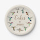 These pretty paper plates feature several hummingbird species native to North America such as Anna's Hummingbirds, Rufous, Black-chinned, Broad-tailed, Costa's and Allen's Hummingbirds. Personalise it with your own text using the templates provided. The font style, font colour, and font size can be changed by clicking on "customise further".
