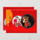 Cute baby Horse wearing Chinese cloths in cartoon style + round frame for your photo onto a red background. Design on postcard with the same baby horse + speech bubble with greeting in back of the card. Matching greeting card, sticker and more soon...