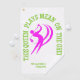 Funny Women's Golf QUEEN PLAYS MEAN ON THE GREEN Humour Golf Towel with CUSTOMIZABLE TEXT that says NO MANSPLAINING REQUIRED. Designed with pink golfing silhouette and bold green arched text. Available in other colours. Buy matching Golf Towels for your bachelorette golf weekends, golf tournaments and competitions. PERSONALIZE by adding your name, group name or event at the bottom. Ideal to show your support for women's golf. Matching gifts available.