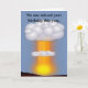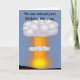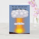 Funny birthday greeting card with graphics of an atomic bomb going off, with text reading, No one missed your birthday this year, the candles on the cake gave it away. Have a very happy birthday. All text is customisable to read anything you want. Fun over the hill birthday greeting.