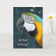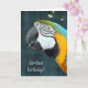 colourful macaw on plaid background with bubbles for humourous birthday