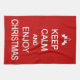 This is a kitchen towel featuring the famous saying KEEP CALM AND ... but the saying has been altered to create a humourous Christmas design. The text, in white against a red background, reads KEEP CALM AND ENJOY CHRISTMAS, there is also a white illustrated sprig of holly above the text. This might make for a fun Christmas gift. www.nataliekinnearphotography.co.uk