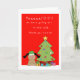 Humourous cute dog Christmas card where the dog thinks the Christmas tree is his new place to go to the bathroom.