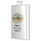 The product is a good size and came exactly as it was pictured. The lid is not attached to the flask, which could be dangerous on drunken nights... The print came out surprisingly well and looks very sharp. Would definitely recommend.