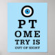 Clever Snellen eye chart design says: Optometry Is Out Of Sight. This poster print makes a great gift idea for the eye doctor, optician, ophthalmologist or optometrist. Perfect decor for your optometry office.