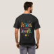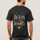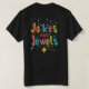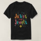 The t-shirt design for "Jokes and Jewels" features a playful and whimsical illustration. A sparkling diamond, adorned with a crown, is depicted laughing heartily. The diamond's laughter lines extend into a necklace of pearls, creating a visually appealing and humourous image. The design combines the concepts of luxury and humour, making it a unique and eye-catching piece