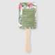 A fun wedding program, tropical leaves and humourous wording, in a fan design to help beat the heat and keep your guests entertained and cool all at the same time.