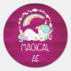 Humourous Unicorn Magical AF on Dark Red Pattern Classic Round Sticker