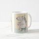 Fun illustration of warthog sitting on stool working on a needlepoint hoop circular frame.