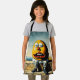 The A.I. created interpretation of a surreal Humpty Dumpty with a painted face sits on a brick wall against a surreal desert landscape backdrop. Humpty Dumpty is wearing shoes and pants and has a clown-like appearance with a red nose and exaggerated facial features.