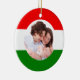 Hungarian Christmas Hungary Flag Family Photo Ornament features red, green and white of the Hungarian flag, which also happen to be the colours of Christmas, as a backdrop for your holiday family photo. Perfect for brand new families wanting to show off a new baby. Upload a family photograph, add your name or message and hang on your own Xmas tree or give as gifts to other members of your family.