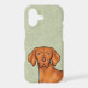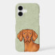 Destei's original cartoon illustration of a cute Hungarian Vizsla / Hungarian Pointer breed dog's head close-up. The background colour is green with a decorative texture. The background colour can be changed to any other colour and the texture can be removed, if so wished.