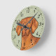 Hungarian Vizsla Cartoon Pointer Dog Head Green Round Clock