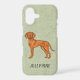 Destei's original cartoon illustration of a cute Hungarian Vizsla / Hungarian Pointer breed dog. The background colour is green with a decorative texture. The background colour can be changed to any other colour and the texture can be removed, if so wished. There is also a personalizable text area for a name or other custom text.