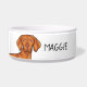 Destei's original cartoon illustration of a cute Hungarian Vizsla / Hungarian Pointer breed dog's head close-up. There is also a personalizable text area for a name or other custom text such as "Water" or "Food".