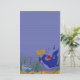 This shark has teeth that were worn down from trying to attack boats, and now he must beg for his food. Since he can't spell, he carries a sign with a crude drawing of a fish and an arrow pointing towards his giant, gaping, nearly toothless maw. A nearby fish is pointing and laughing at this sad shark. This cool shark stationery is great for the aquatic animal lovers in your life. Children will love this underwater themed paper that's lined for neat handwriting.