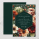 A moody and romantic design featuring a rich tapestry of autumn botanicals. On a deep hunter green background, painterly anemones and lush peonies bloom in dramatic shades of terracotta, rust, and creamy ivory. This artistic composition evokes a sense of elegant, vintage romance for a sophisticated affair.
