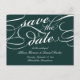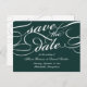 Elegant save the date postcards in rich winter hunter green and white feature embellished calligraphy script lettering for a classic, formal look. Personalize the reverse side with your wedding details, including names, date, location, and additional information like your wedding website. Space provided for your pre-printed return address.