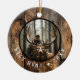 Celebrate your greatest hunting achievement with this rustic photo ornament! Featuring a majestic buck and a proud hunter framed by weathered wood textures, this piece captures the thrill of the chase. Personalize it with your favorite hunt photo and the year to commemorate a truly memorable experience. It's the perfect keepsake for any avid outdoorsman or wildlife enthusiast, adding a touch of wilderness charm to any holiday tree. Cherish the memories of your best hunt forever with this unique and striking design. **Longer or shorter text may affect the curvature of the text, this can be altered inside the design studio.