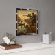 This square clock depicts a serene yet active outdoor scene at sunset, featuring a hunter aiming a rifle, fishermen in a boat and along the shore, a majestic deer, and a curious fox. The warm colours and detailed portrayal of wildlife and the sportsman's life make this clock a perfect addition to any hunting or fishing enthusiast's decor.