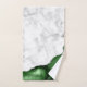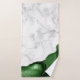 Elegant white marble and hunter green agate trimmed with faux silver glitter combine in this luxurious bath towel set design.