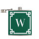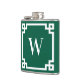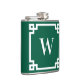 Hunter Green and White Greek Key Border Monogram Hip Flask