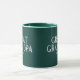Great Grandpa coffee mug design with established year featuring a white stamped font set on a Hunter Green background. Click customise to edit the background colour!. Visit our shop to view this mug in a large assortment of grandfather names.