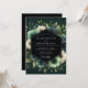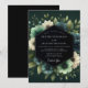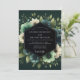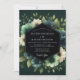 Experience a dramatic and elegant atmosphere with this stunning botanical design, featuring a deep hunter green and charcoal palette. Luminous painterly blossoms in shades of teal and soft ivory are artfully arranged with delicate, verdant foliage. This modern and romantic arrangement creates a sophisticated and moody aesthetic for your special day.
