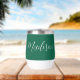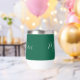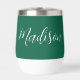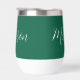 A hunter green personalised name wine tumbler for a girl or guy who loves simple, handwritten gifts. Beautiful cursive script spelling out your name in modern typography. A trendy monogram present.