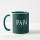 Papa coffee mug design with established year featuring a white stamped font set on a Hunter Green background. Click customise to edit the background colour!. Visit our shop to view this mug in a large assortment of grandfather names.