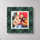 This festive plaid Christmas holiday wall art canvas features a custom square family photo space framed by a classic yet modern hunter / pine green and black Scottish tartan plaid background. There is an option to change the green background color to coordinate with your decor. Photo tip: crop your photo to a square shape prior to upload.