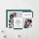 Stylish holiday card features three family photos to give you plenty of opportunity to use your favourite pictures. Personalise the custom text with your family's name, individual names and the year. This two-sided card design includes a matching pattern on the back. Available in red, green, navy, aqua, pink, teal, lavender, black, silver and gold. Or set your own background colour. Matching products available.