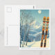 Hello from the snowy mountains of Hunter Mountain, New York, USA! We hope you're having a wonderful ski vacation. This postcard features a gorgeous blue-grey mountain landscape with retro ski boards in an orange tribal pattern.