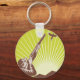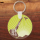 A hunter with his gun up shooting a goose flying by. This design looks really effective on this Keychain