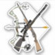 14" x 14" Custom-Cut Vinyl Stickers. Hunting Illustration: Bow and arrow, shotgun, muzzleloader. Perfect vinyl sticker for yourself, or the outdoor sportsmen in your life. This sticker features the weapons for all three seasons of hunting: archery, shotgun, and black powder.