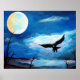 If you love birds, this Hawk poster is the one for you. Hunting Hawk circling over some misty mountains while the full yellow moon lights up the night sky.