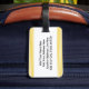This was purchased as part of a 40th Birthday present for my nephew who is going to Vegas. It is made of high quality, very study and we decided only to put his name on the back of the tag, but you can add a full address if you so wish.