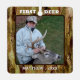 Camouflage design ornament personalised with a photo and your custom title and text (shown with FIRST DEER and name and year. The design is duplicated on the back side. The sample is shown on the metal ornament style--other styles are available on the ordering page. All text is editable if you desire a different title. ASSISTANCE: For help with design modification or personalisation, resizing or transferring the design to another product, contact the designer BEFORE ORDERING via the Zazzle Chat MESSAGE tab or email makeitaboutyoustore@gmail.com.