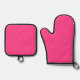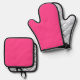 Pink oven mitt and pot holder set for a barbecue or kitchen with heat protection.