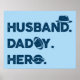 Celebrate Father's Day with this vintage style "Husband. Daddy. Hero" typography graphic that features a hat, football, and moustache. Image by jekson_js | Shutterstock. Image ID: 1168069126 | Shutterstock® - All Rights Reserved.