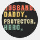 Husband Daddy Protector Hero Fathers Day Saying Classic Round Sticker