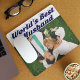 Mousepad with World's Best husband in 3D dark blue text. Customise it with your own photo.