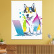Husky Dog Computer Rainbow Watercolor Tech Savvy Canvas Print