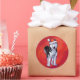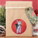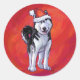 Husky in Santa Hat On Red Classic Round Sticker