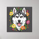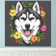 Husky Sled Dog And Colourful Mirablis Flowers Canvas Print
